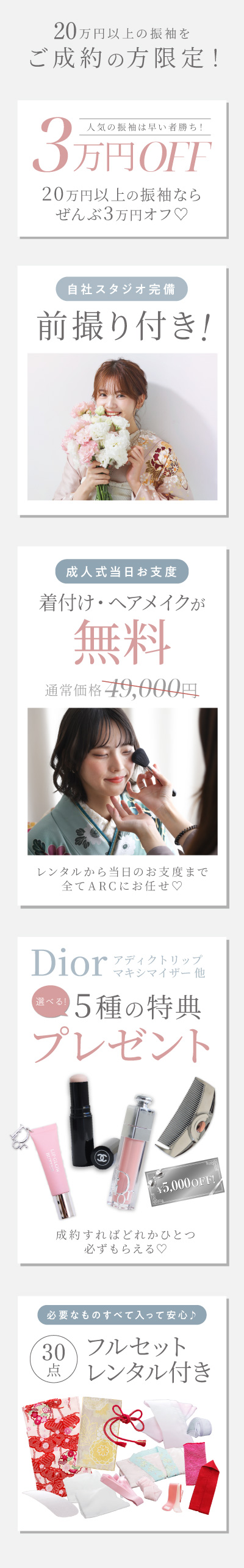 ※当日お支度特典・ブランドコスメプレゼントは20万円以上の振袖ご成約が対象となります