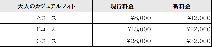 撮影料金改定のお知らせ
