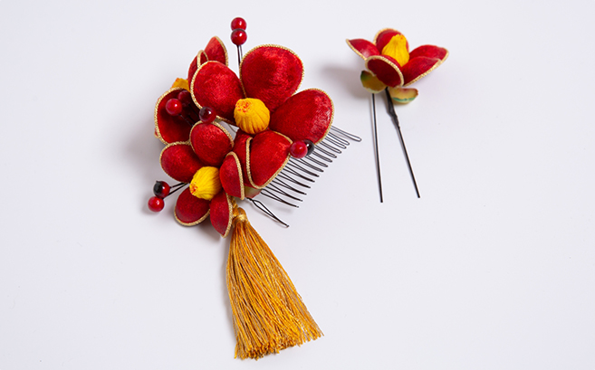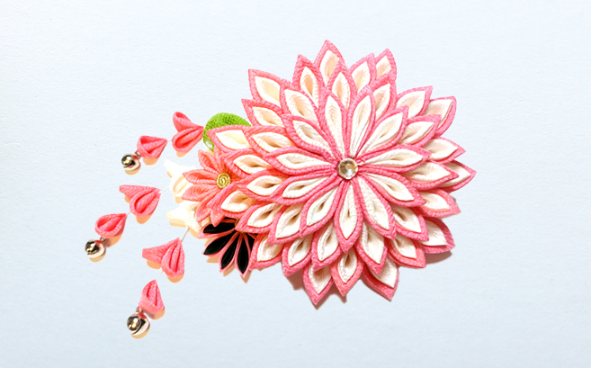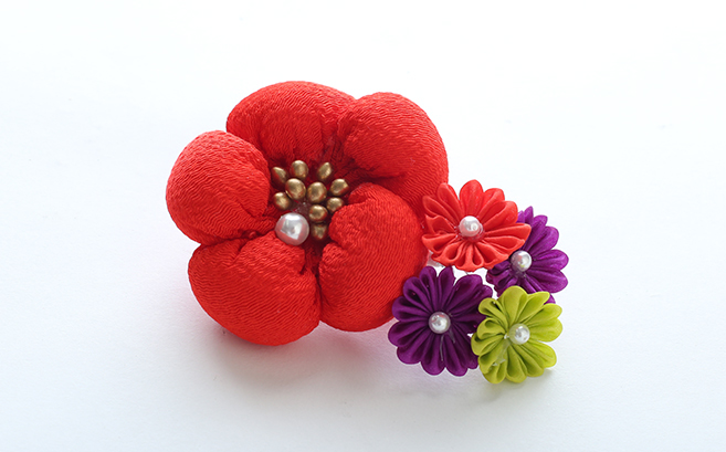 つまみ細工は小さな布をつまんで張り合わせて花の形にして作る技法で江戸時代からある伝統工芸品です。